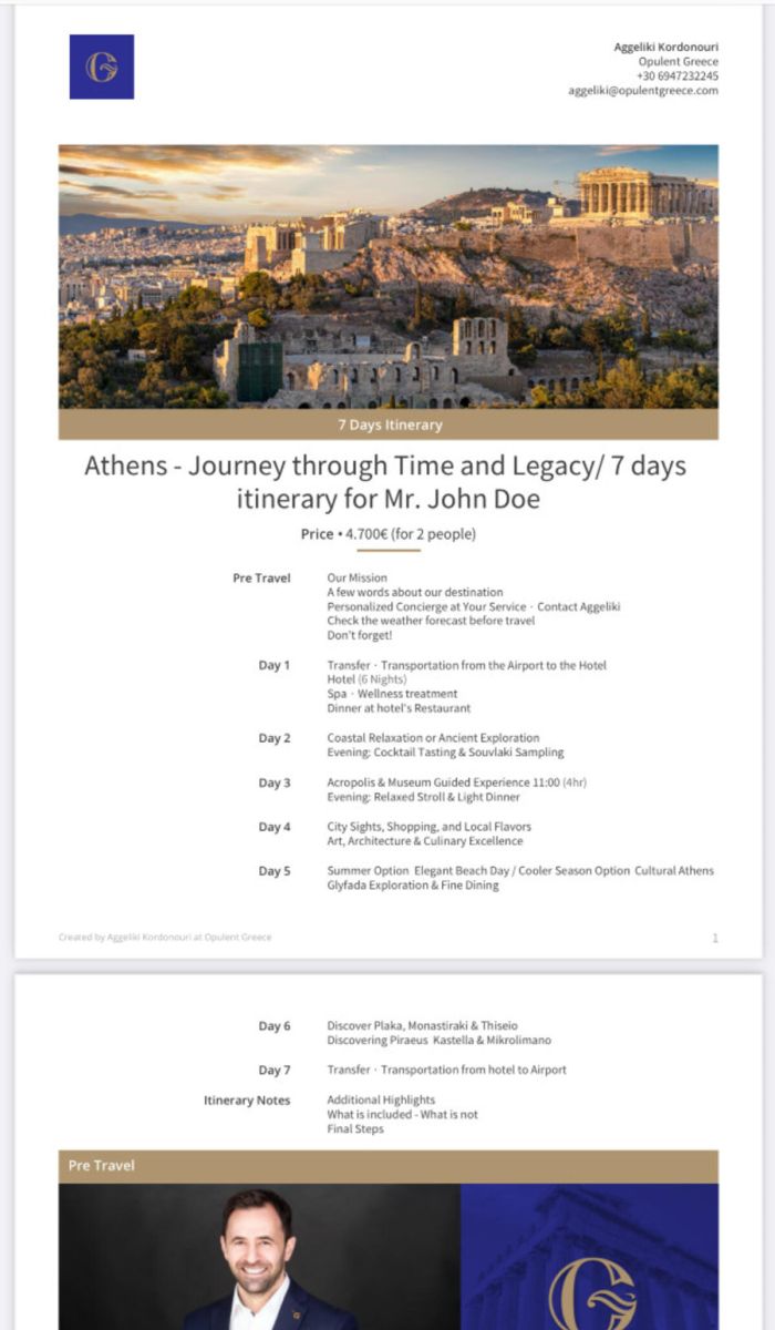 With Opulent Greece, every guest receives a personal digital guide designed to make travel effortless and stress-free. Our comprehensive digital service provides all your travel information, documents, and personalized itineraries in one place, allowing you to fully relax and immerse yourself in your Greek journey.