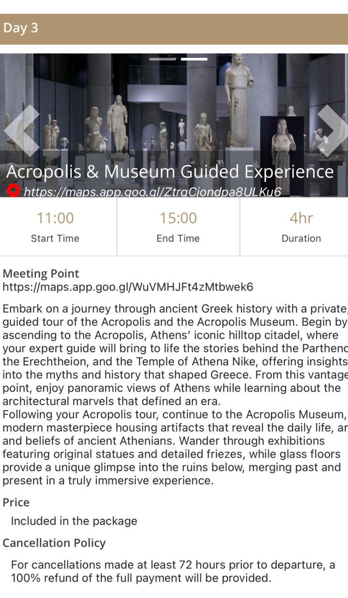 Our digital itinerary service provides you with a complete, easy-to-navigate schedule that’s accessible anytime, anywhere. No downloads required! Access every detail of your journey—including routes, activity suggestions, reservation numbers, tickets, and more—all through an app we use on your behalf. This guide works even offline, ensuring you never have to worry about connectivity.